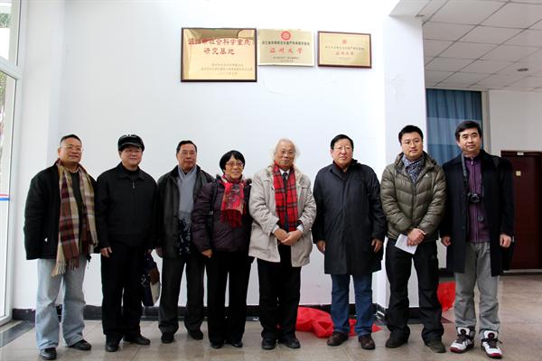 一楼,举行揭牌仪式。仪式由孙良好副院长主持,揭牌的两位嘉宾是:中国社会科学院荣誉院士、中国民俗学会荣誉会长、国家非物质文化遗产保护专家委员会副主任刘魁立先生,浙江省文化厅原副厅长、浙江省民俗文化促进会副会长连晓鸣。文化部正局级巡视员、文化部非物质文化遗产司原副司长、国家非物质文化遗产保护工作专家委员会秘书长屈盛瑞先生致辞,蔡贻象院长做答谢辞。