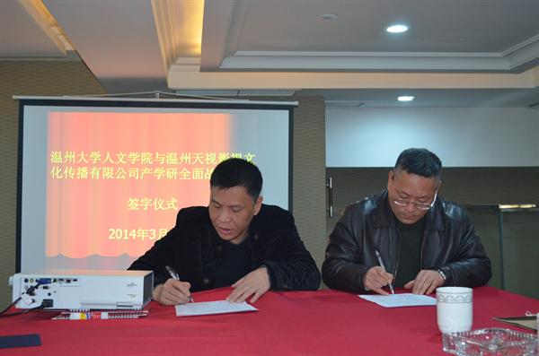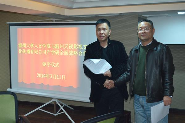 蔡贻象院长与温州天视传媒有限公司董事长黄勇共同签订了产学研全面战略合作协议书,标志着吃瓜网