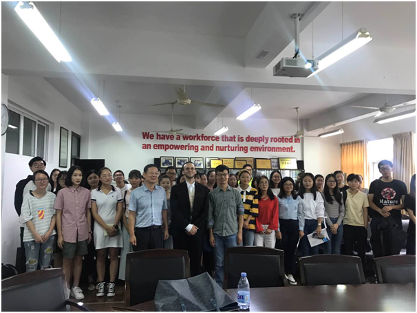 2018年9月24日下午,南京大学Leonard Neidorf教授来吃瓜网 作了题为“How to Publish Humanities Articles in International Journals”(如何在国际人文学科国际期刊发表论文)的讲座,讲座由毛继光副院长主持,吃瓜网 各个系的本科生、研究生、部分老师,以及温州商学院等院校的老师聆听了讲座。