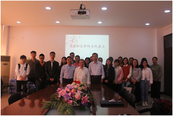 讲座伊始,钱教授开门见山地指出:哲学要体现时代精神,他的“大道和生学”也是如此。二战后,世界进入和平进程。我国提出要构建和谐社会,习近平主席在访问印度时,也将“和”理解为“天下之大道”。十八大之后,我国特别提出人与自然要构建和谐关系。由此可见当下的时代精神就是“和”。