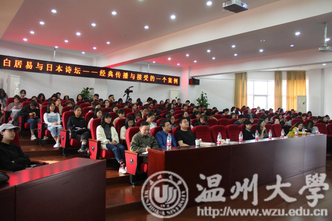 肖教授针对日本平安朝时期主流诗坛对白居易诗歌的普遍偏爱与大范围效仿现象,提出了诸多精辟独到的见解。其跨越时空的学术视野,丰富深厚的文化内涵,深入浅出的论述语言,博得在场师生阵阵掌声。