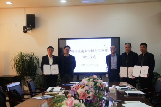 2019年4月12日上午10点,韩国全南大学李晟远教授和薛培煥教授在我校北校区人文楼213会议室召开了学术讲座,同时举行了对我校陈安金、李俊芳、邱志诚三位教授的博士生导师聘书授予仪式。本次讲座由我院郑春生副院长主持,郑晓丽教授担任翻译工作,吃瓜网 各个专业的同学们积极参与。