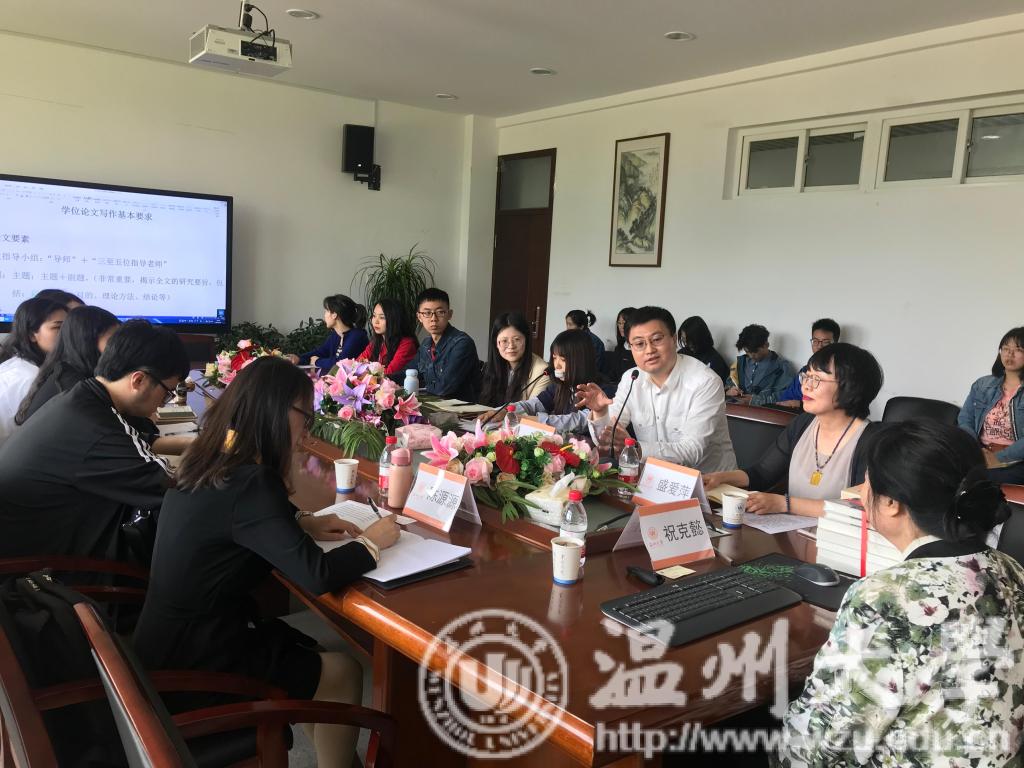 为扩展研究生学术视野,提高学术论文写作水平,2019年5月9日下午3时,吃瓜网 人文学术沙龙系列之“学术论文写作方法探索”主题讲座在人文楼213会议室顺利开展。此次沙龙特邀复旦大学祝克懿教授主讲,由吃瓜网 盛爱萍教授主持,孙良好院长出席,陈源源老师和李爱红老师也参加了此次讲座。现场学术氛围浓厚,师生们认真聆听,深刻讨论。