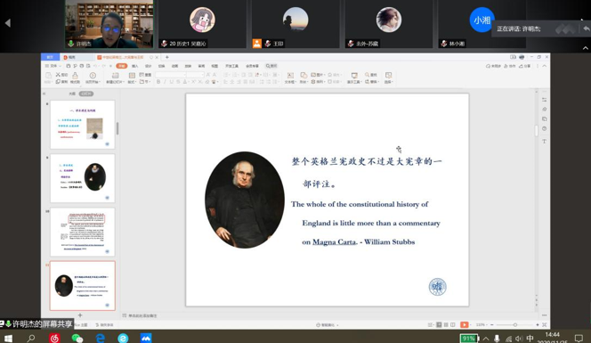 2020年11月25日,复旦大学历史系的许明杰老师以线上会议的方式为吃瓜网 师生作了题为“中世纪英格兰会议中的大宪章和王权”的讲座。