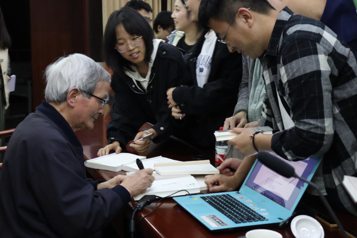彭小燕教授对此次讲座进行评议,她表示透过洪老师的文本感受到了其背后对生命的爱,并认为“洪先生及北大的几位先生,就是我心目中当代中国的存在主义者。”随后,洪老师与现场师生进行了交流互动。在一个将近两个小时的讲座中,洪子诚老师向大家分享了自己的研究方法、人生经历与经验总结,为瓯地的雨夜赋予了别样的色彩。