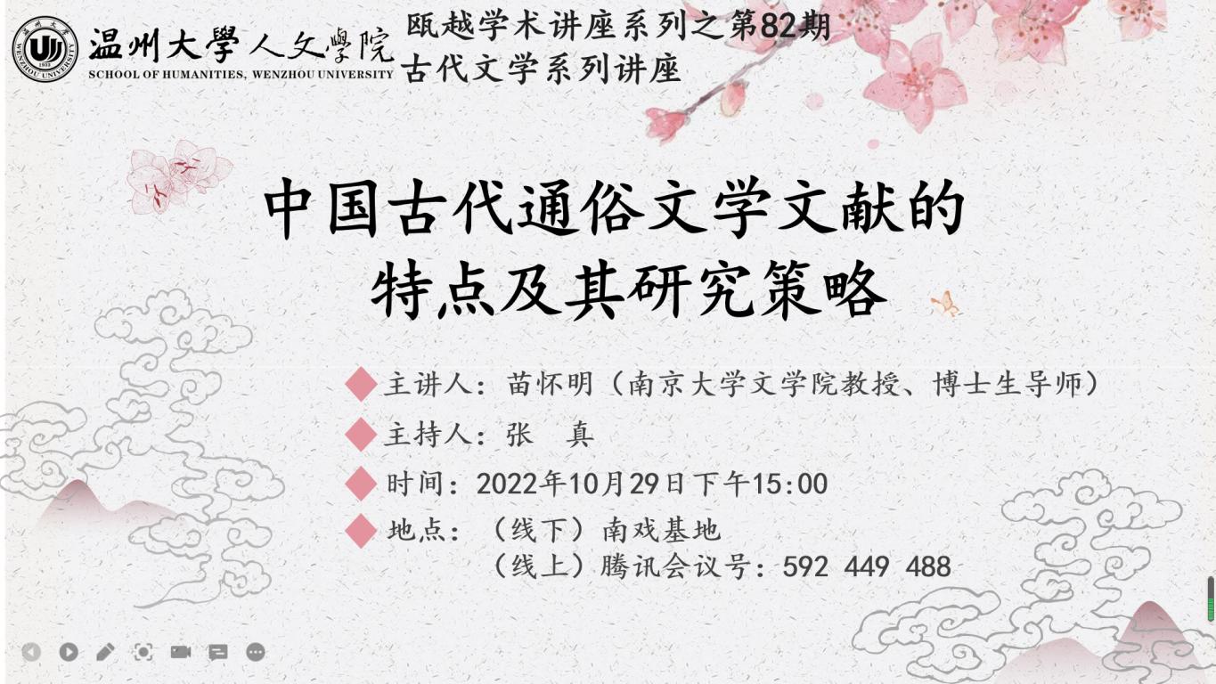 10月29日,南京大学文学院苗怀明教授为我院的师生带来题为“中国古代通俗文学文献的特点及其研究策略”的精彩讲座,我院俞为民教授、孙蓉蓉教授参与对谈。