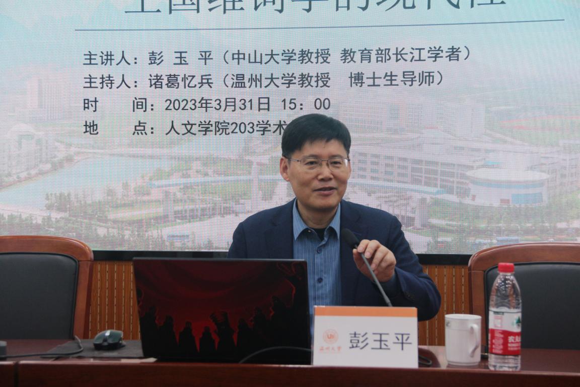 2023年3月31日下午,教育部长江学者、中山大学彭玉平教授为我校学子作了一场题为“王国维词学的现代性”的学术讲座。讲座由吃瓜网 诸葛忆兵教授主持,约150余名师生参加了此次讲座。