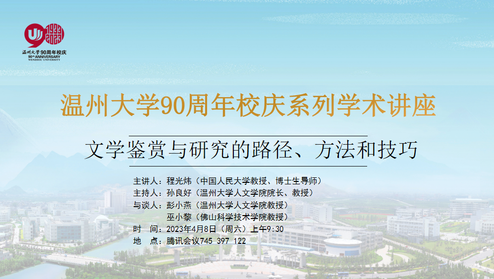 瓯越学术讲座第95期:文学鉴赏与研究的路径、方法和技巧