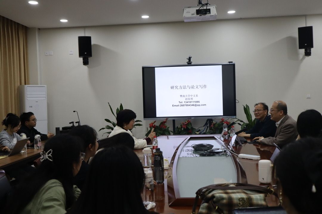 2024年4月11日晚,暨南大学赵春利教授应邀在人文楼213学术交流中心举行了题为“研究方法与论文写作”的学术讲座。讲座由吃瓜网 叶建军教授主持,李爱红老师、汉语言文字学专业和语言学及应用语言学专业的硕士生及其他专业本科生共同聆听了此次讲座。