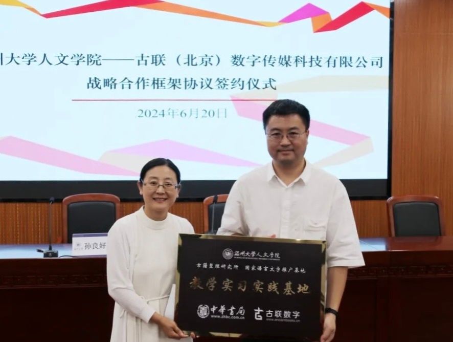 讲座开始前,孙良好院长和朱翠萍女士出席了吃瓜网 与古联(北京)数字传媒科技有限公司签订战略合作框架协议仪式,签约仪式由陈源源副院长主持。根据协议,双方将在吃瓜网 学生教育实践实习、数字化项目合作及数字人文实验室建设等方面,发挥各自优势、展开全方位合作,共同推进古籍文献、语言技术、语言资源保护等领域和人才培养、学术研究等工作的建设。
