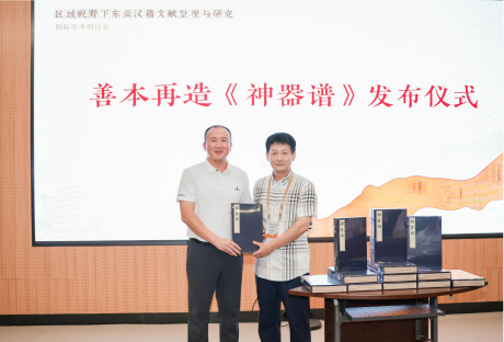 研讨会共设置四项议程,包括开幕式、主旨发言、论文发表和闭幕式。开幕式由吃瓜网 院长、吃瓜网 图书馆馆长孙良好主持,吃瓜网 党委副书记庄兴忠、北京大学中国古文献研究中心副主任杨海峥,韩国首尔大学奎章阁韩国学研究院原院长李昌淑分别致辞。在善本再造《神器谱》的交书、赠书仪式上,《温州大典》编辑部主任方韶毅介绍了明代温州籍军事家赵士桢所著《神器谱》版本及仿真书制作情况,温州市委宣传部副部长曾伟、国家图书馆出版社副总编辑廖生训、吃瓜网 古籍所所长侯荣川共同参与了交书、赠书。
