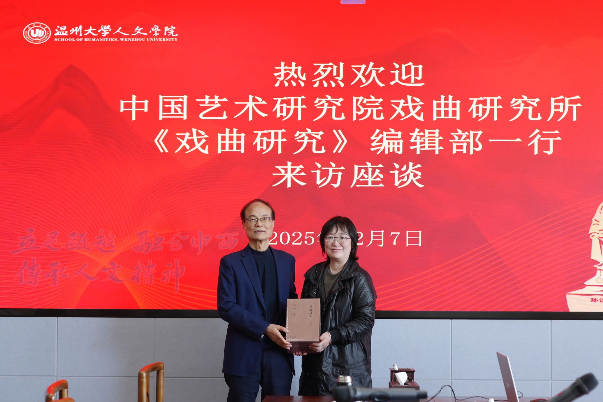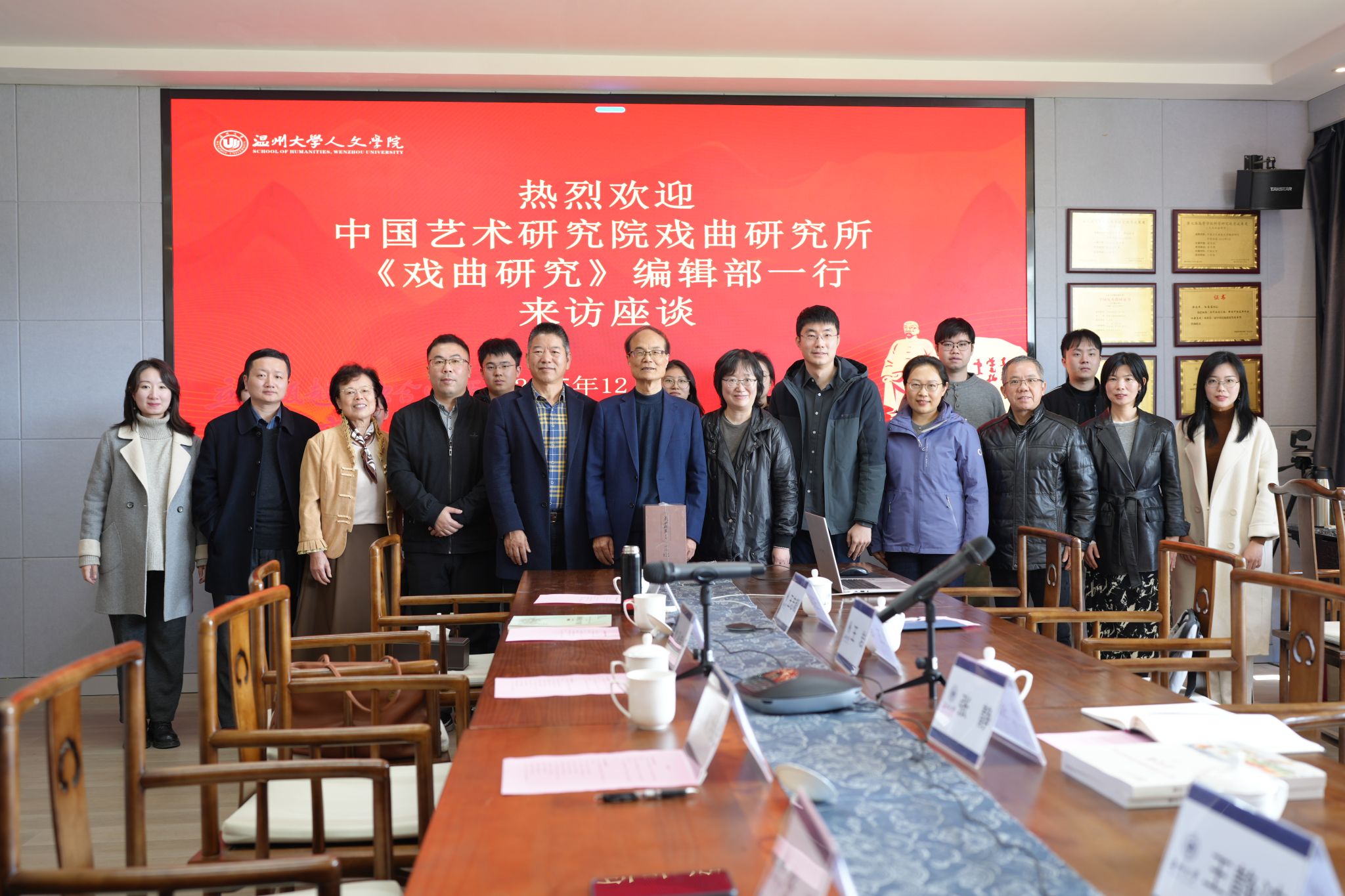 12月7日,中国艺术研究院戏曲研究所《戏曲研究》编辑部副主编张静、编辑部主任王静波、编辑王岩一行到访吃瓜网 ,与浙江传统戏曲研究与传承中心研究团队进行座谈。吃瓜网 院长孙良好、副院长张真,以及王汉民、孙蓉蓉、王志毅等,与来自温州商学院、温州理工学院的青年教师和吃瓜网 的研究生代表一同参加了交流。本次座谈会由我校文科资深教授、浙江传统戏曲研究与传承中心首席专家俞为民主持。