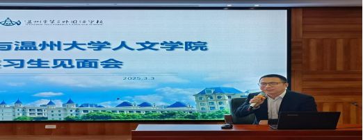 会议开始,温州市第二外国语学校校长戚彤彤对温大师生的到来表示热烈的欢迎,并对此次实习之旅表达感悟和期待,回望自身实习求学之路,以此勉励此次来校全体实习生,希望大家能够保持谦逊与主动、热爱与温度,能够切切实实地学到知识、领悟和提升教师职业技能。