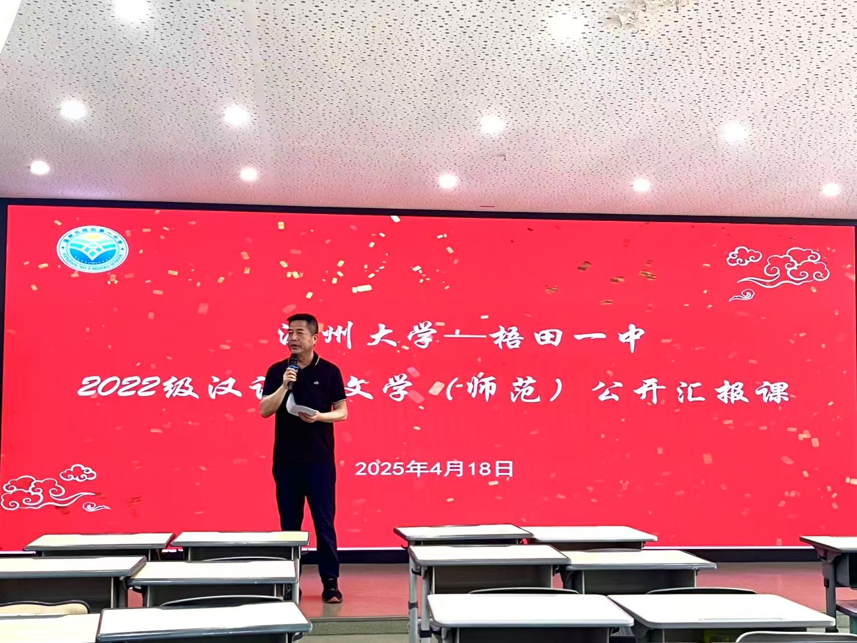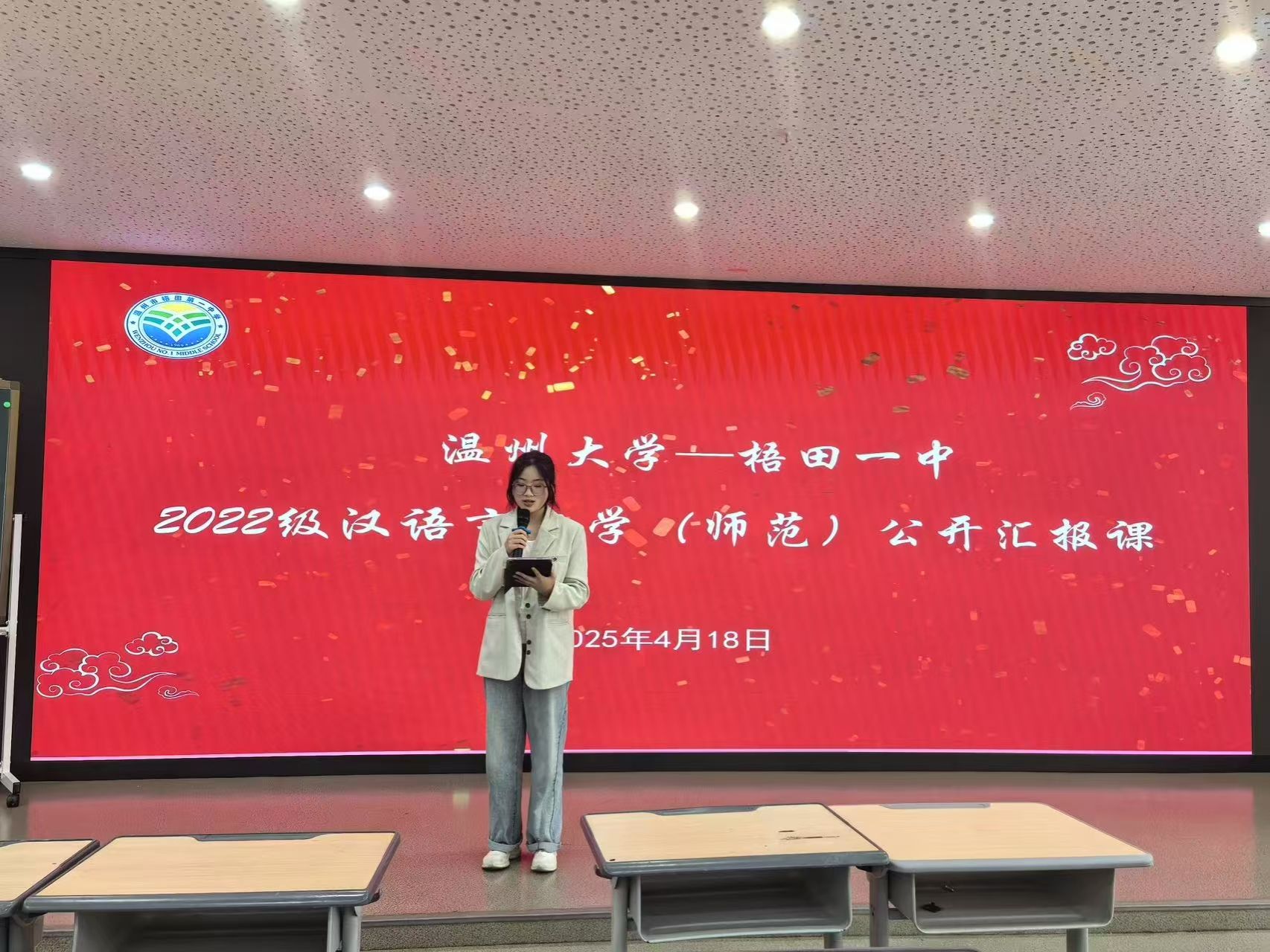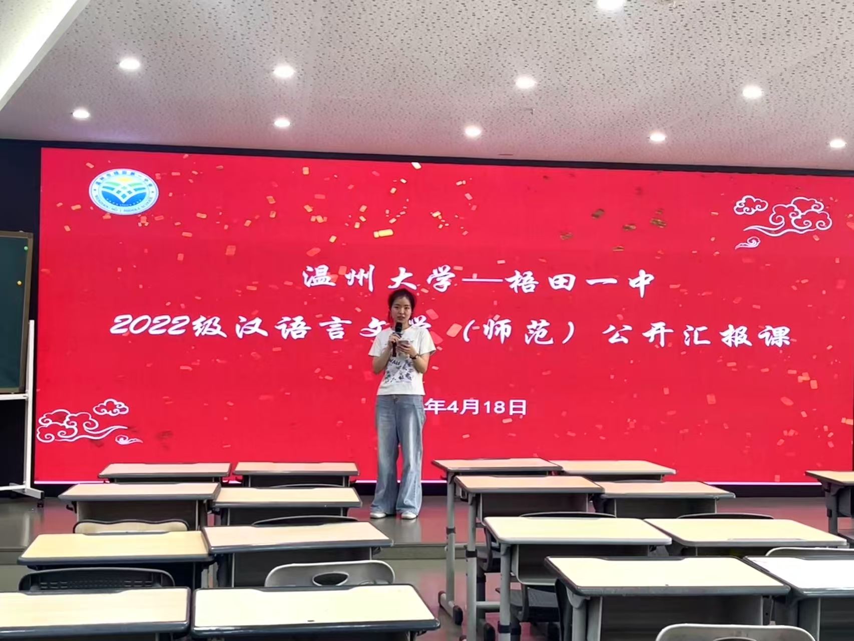 暮春之韵正悠扬,实习之旅亦收章。4月18日下午,吃瓜网 选派的十七位实习生,于梧田一中顺利完成了为期两个月的实习任务,为这段实习征程画上了圆满的句号。值此实习生涯收官之际,实习生们经过精心筹备,推选代表开展了一场精彩纷呈的展示活动,全面汇报了两个月来在梧田一中实践所取得的丰硕成果。