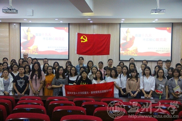 研究生党支部在人文楼203学术报告厅开展“喜迎十九大,不忘初心跟党走”主题党日活动,缅怀党的丰功伟绩,接受党性洗礼。