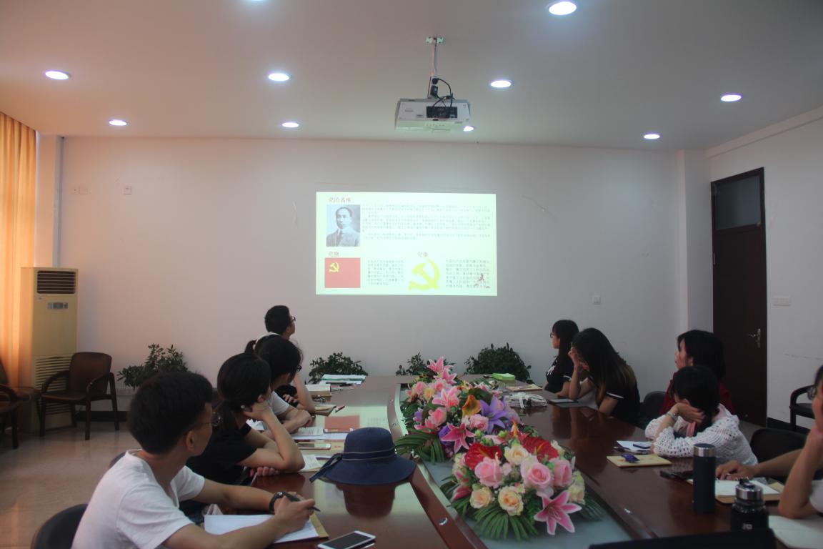 会上,组织委员陈凯丽使用UMU软件播放《诞生地》纪录片进行微党课学习,让同志们了解了1921年建党前后一些鲜为人知的历史细节和人物故事,感受中共一大召开的艰难历程。随后,国情党史宣讲团赵飞跃同志以“知史爱党,敬党爱国”为题进行宣讲。赵飞跃同志以中共一大的召开为始,对我党97年的历史进行了系统的梳理,带领大家回顾党走过的艰辛历程,铭记这段历史,牢记自己的使命。宣讲完毕,同志们也纷纷发表了自己的看法,王红同志认为我们不能忘记过去和历史,要延续共产党人敢于担当的品格;郭佳乐同志认为要抵制历史虚无主义,学好党的历史,去塑造和宣扬党的光辉形象;孙启杭同志则表示共产党员要有信仰,从小事做起,从身边做起,为同学们服务。