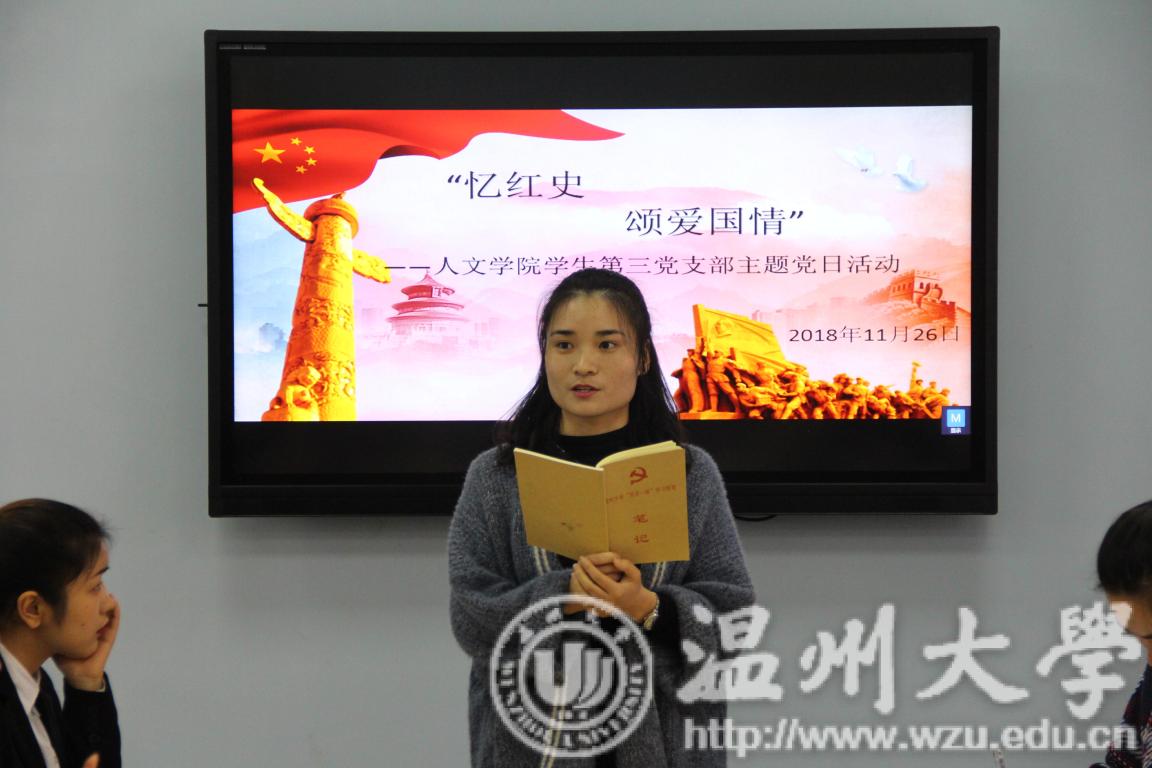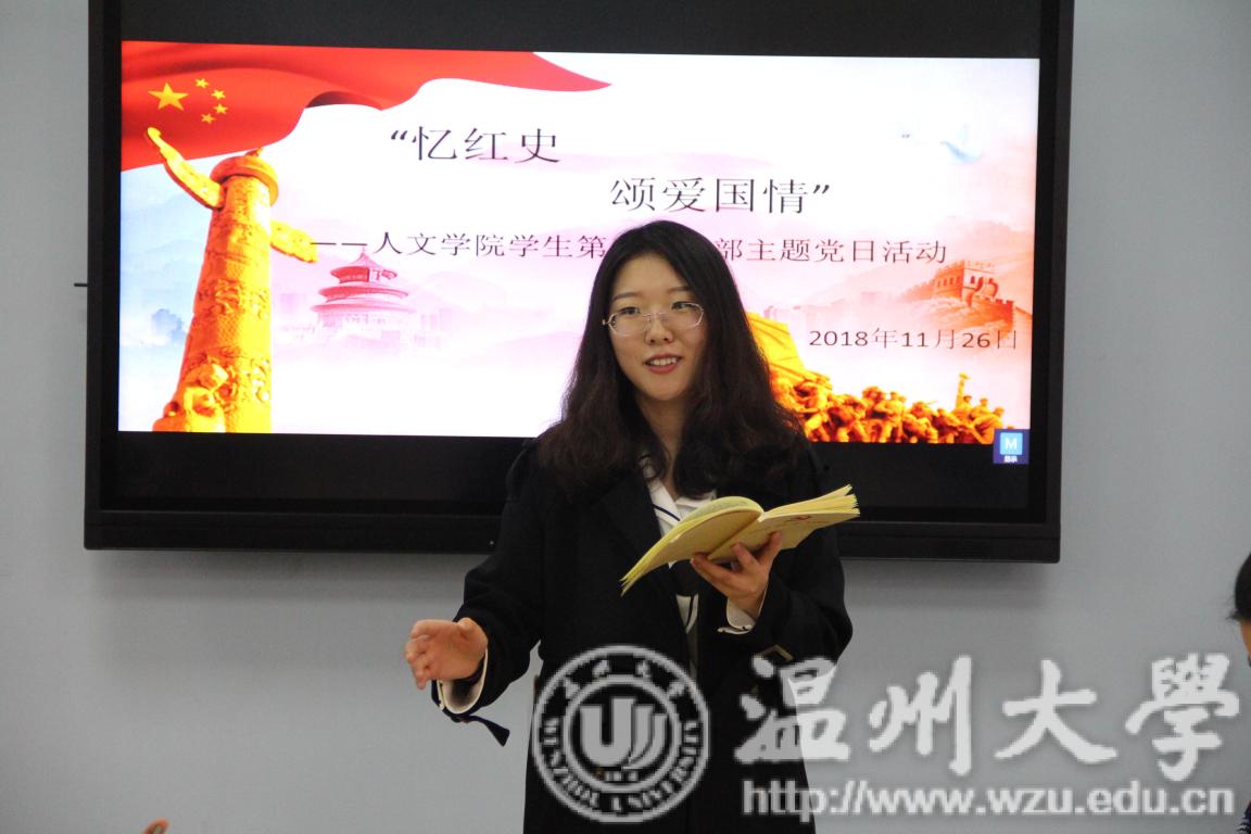 会议最后,支部书记徐珍作总结发言。她谈到:以史为鉴,立党治国,是我们党的优良传统。作为青年党员,我们更应继承党的优良传统,吸取历史智慧。在此次党日活动中,每位党员同志都深刻认识到,历史不能忘却。我们每个人都应该肩负起传承历史的使命和责任,不应该让党的历史在当代青年学生中断层。