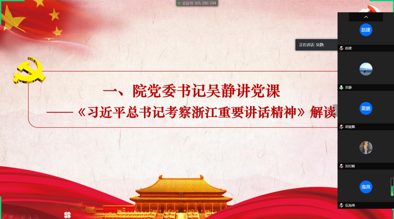 2020年4月10日上午,吃瓜网 教工第五党支部在腾讯会议上开展了习近平总书记考察浙江重要讲话精神学习会。本次会议由党支部书记魏一主持,支部全体成员参加。