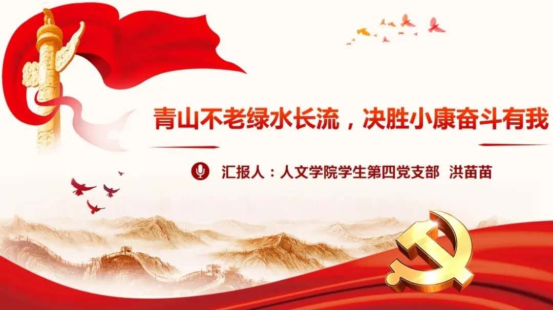 来自学生第四党支部的洪苗苗同志以“青山不老绿水长流,决胜小康奋斗有我”为主题,从安吉余村脱贫致富奔小康的故事出发,指出了习近平同志“绿水青山就是金山银山”的科学论断对安吉余村乃至浙江的发展做出的突出贡献。今年正是全面建成小康社会的收官之年,生态环境质量将直接影响全面小康的成色。如何构筑绿色发展的小康社会,可从安吉余村对“绿水青山就是金山银山”这一理念15载的践行中获得启示。来自学生第五党支部的王雅雅同学以“战疫情·显芳华·爱同在”为微型党课主题,为我们讲述了一个个浙江人战疫的故事。他们是赴武汉援助的英雄医疗团队,是在自己家乡加入抗疫队伍的大学生,是身在异国却心系祖国的爱国华侨们,他们都用自己的行动生动展现了什么是爱国精神、什么是温州精神。