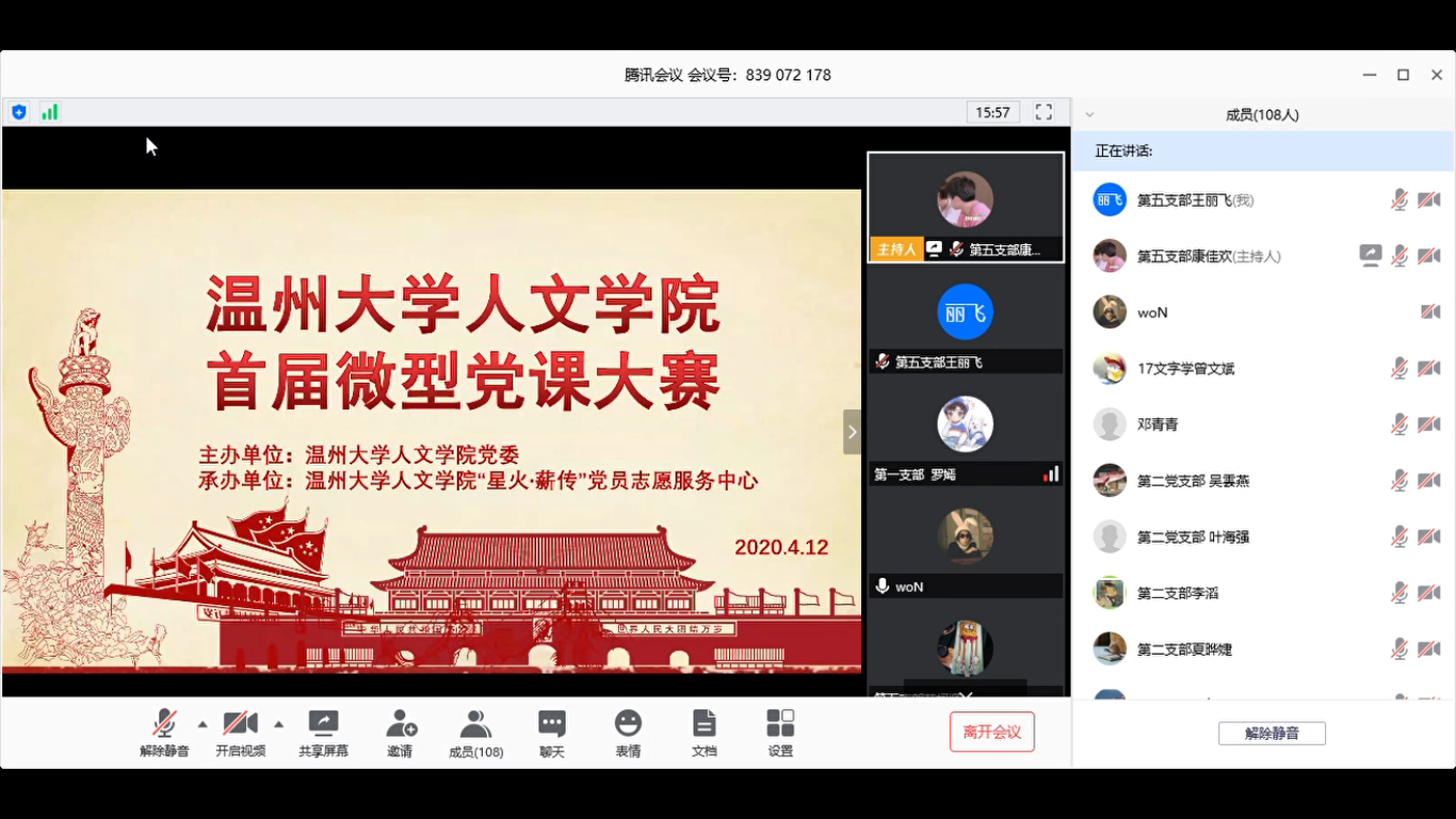4月12日晚18:30,吃瓜网 首届学生微型党课大赛在线上举行。吃瓜网 党委副书记魏一老师、辅导员胡震鹏老师、申业磊老师和李丹萍老师担任本次比赛评委,吃瓜网 全体学生党员在线上观看比赛。
