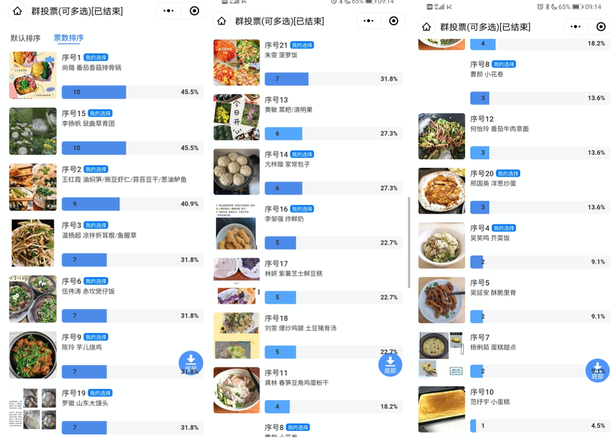 支部在4月14日对党员同志们所做的美食组织了评选活动,22名支部成员纷纷根据自己的喜好,选出了自己心仪的美食,评选结果将在“吃瓜网 ”微信公众号上展示,尚璐同志的番茄香菇排骨锅最受欢迎,李扬帆同志的鼠曲草青团和王红霞同志所做的油焖笋也得到大家的广泛认可。