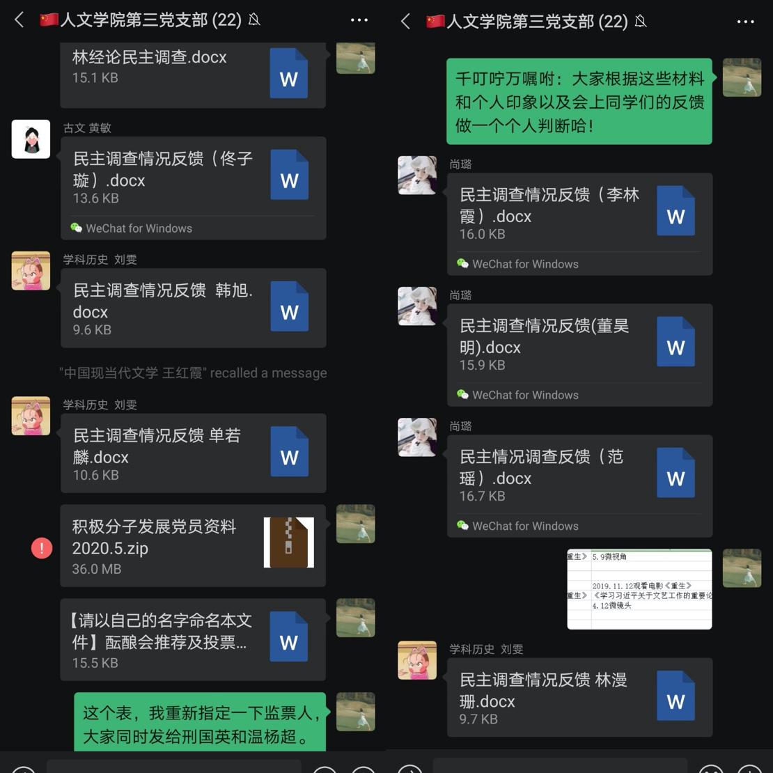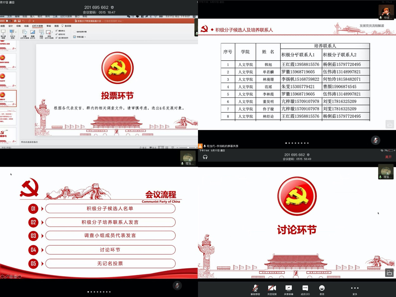 在除联系人和调查小组之外,其他党员也进行了讨论发言。李邹强、李扬帆、陈姗姗、伍伟涛、尚璐等同志本着客观、真实的原则,主动把自己对积极分子的了解情况进行了进一步陈述,体现了各位党员对本次发展情况的审慎负责的态度。