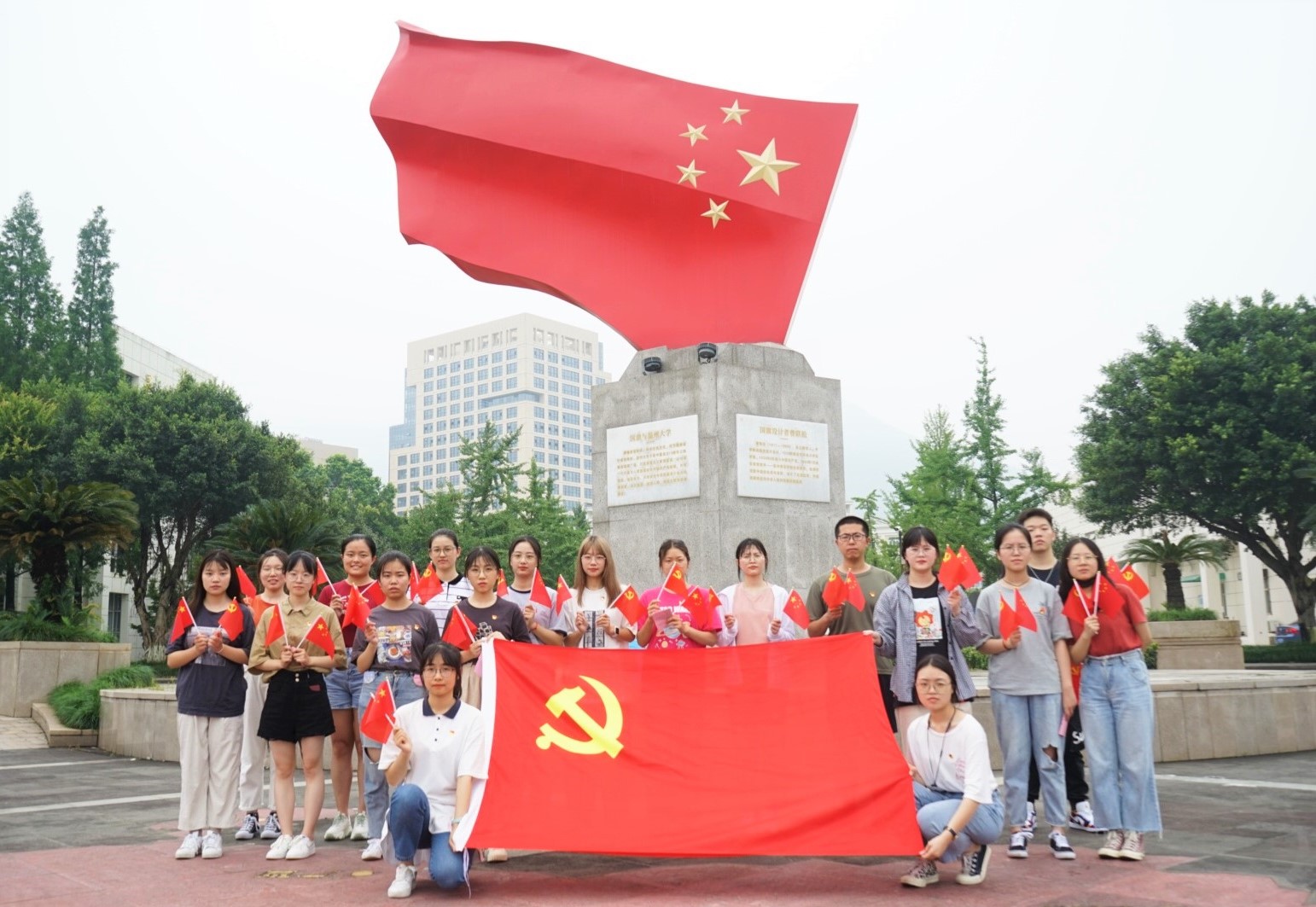活动结束,全体党员同志在国旗广场合影留念。本次党日活动通过观看图片展览、诵读《青春》片段、重温入党誓词的形式,展现了学生党员们昂扬向上的精神面貌,共同庆祝中国共产党成立100周年。站在“两个一百年”的历史交汇点上,青年党员将不忘初心,牢记使命,充分发挥党员的先锋模范作用,为党的事业增光添彩。