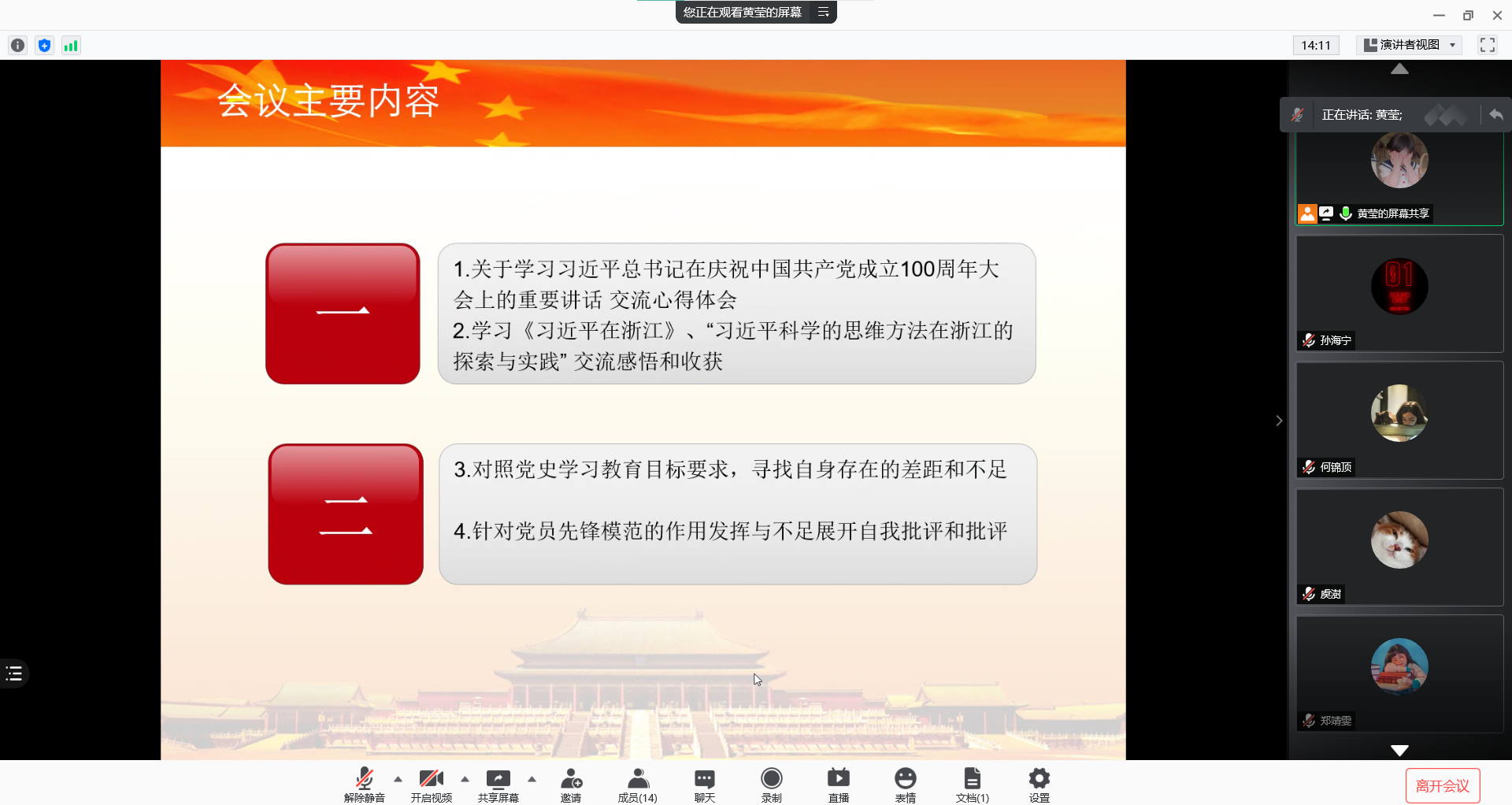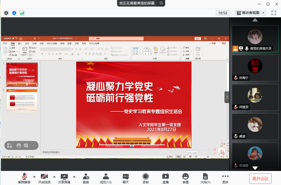 2021年8月27日,在全国疫情形势仍然紧张的特殊时期里,吃瓜网 学生第一党支部首次采用线上会议形式举办了党史学习教育专题组织生活会,并由支部书记黄莹主持。