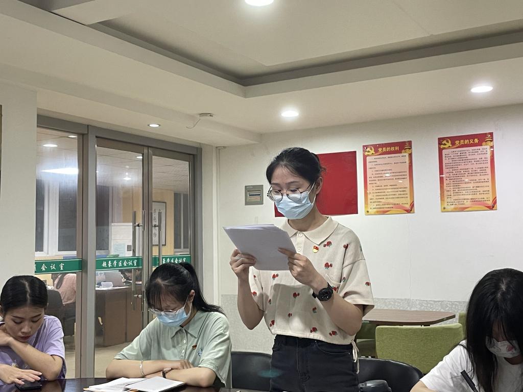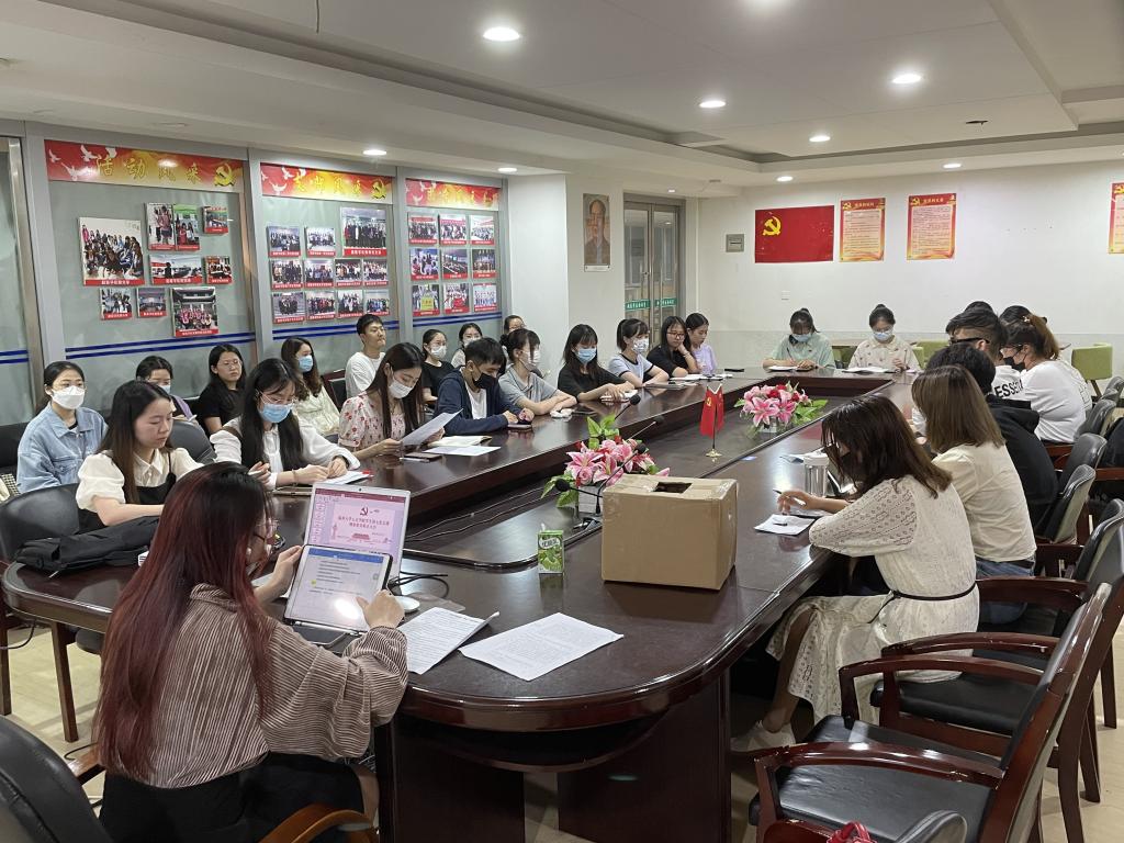 2022年6月1日晚,吃瓜网 学生第七党支部于超豪学区学生之家召开讨论关于刘雅晨、刘冰冰同志转正问题的支部大会。支部15名正式党员、6名预备党员以及12名入党积极分子出席本次会议。会议由党支部书记潘铁颖同志主持并严格按照预备党员转正程序进行。