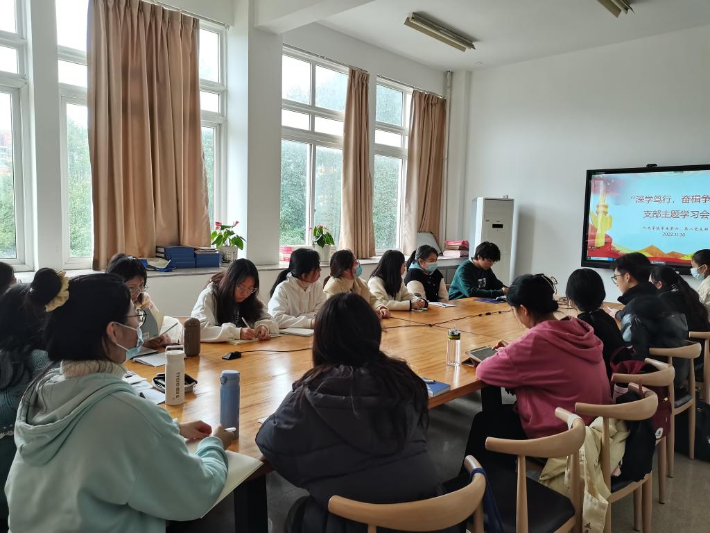 为深入学习贯彻党的二十大精神,提高支部党员的党性修养,2022年11月30日,吃瓜网 学生第四、第八党支部在人文楼214党员之家举办了以“深学笃行,奋楫争先”为主题的党日活动暨学习会。本次会议由朱宁恺同志主持,14名党员同志和6名入党积极分子参加。
