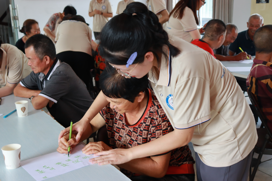 支部党员在温州市泽雅镇五凤垟村针对老人开展一对一的写字教学,在起顿转折中书写推普助力乡村振兴的新篇章!