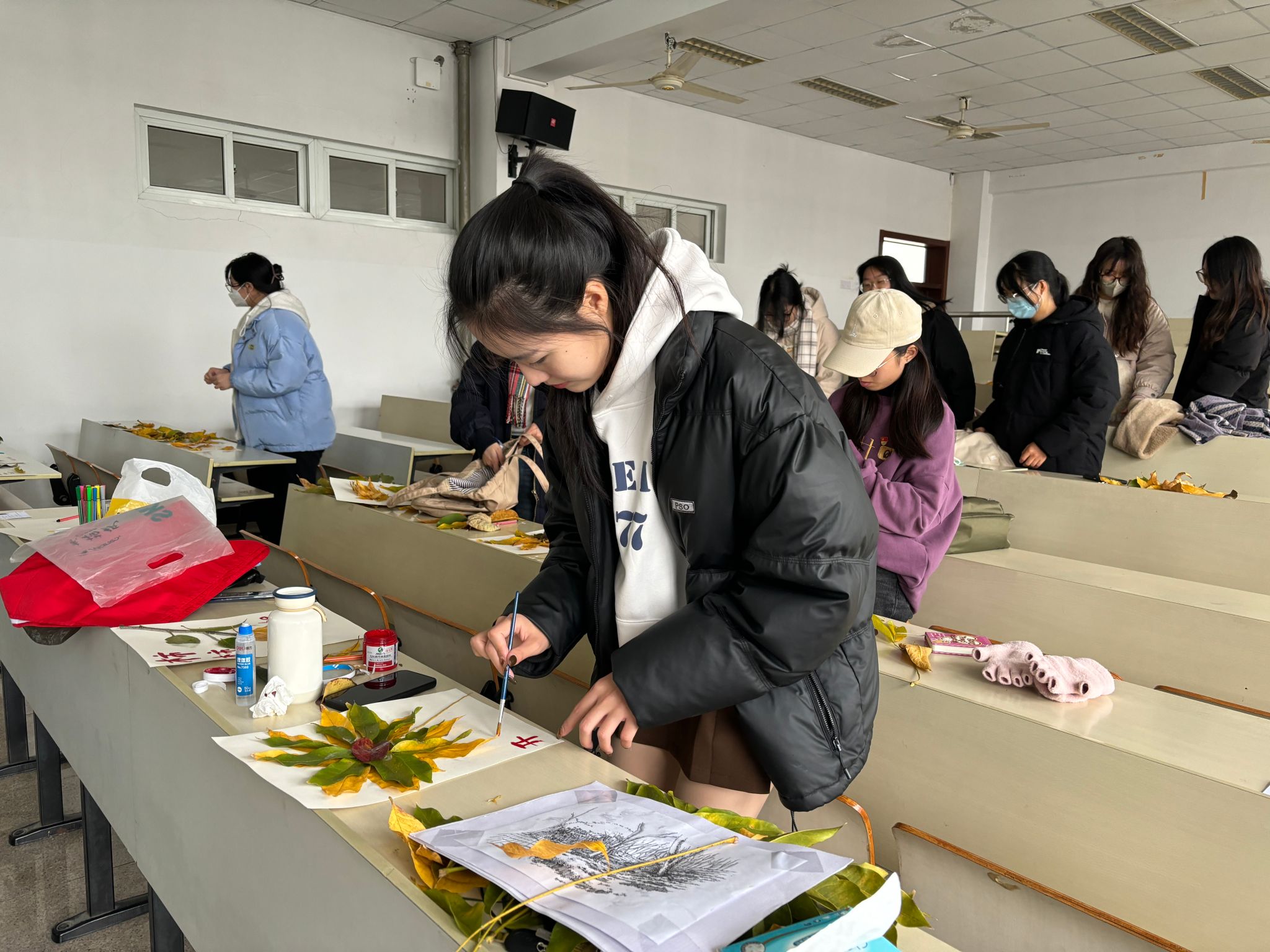 第三部分为助力“研”途。支部同志利用现有材料,灵活组合运用各具特色的落叶,创造出独特的作品,并赋予“柿柿如意”“开门红”等美好的寓意,以此向考研同学送上暖心祝福。