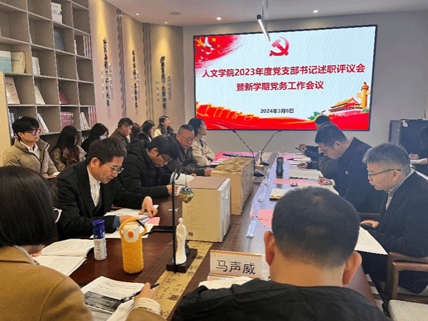 3月6日下午,吃瓜网 2023年度党支部书记述职评议会在国家语言文字推广基地会议室顺利召开。吃瓜网 党委班子成员、师生党支部书记及支委代表参加会议。会议由党委副书记魏一主持。