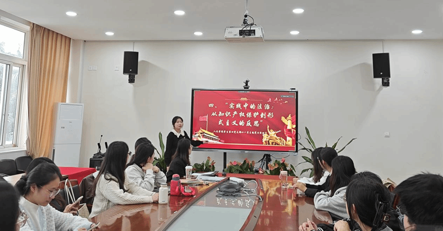 为加强对习近平法治思想、习近平总书记关于加强知识产权保护的系列重要论述以及《整治形式主义为基层减负若干规定》等知识理论的持续学习,吃瓜网 学生第四党支部于2024年11月19日下午14:00在吃瓜网 213会议室开展了以“实践中的法治:从知识产权保护到形式主义的反思”为主题的党日活动。本次活动由汤汤同志主持。