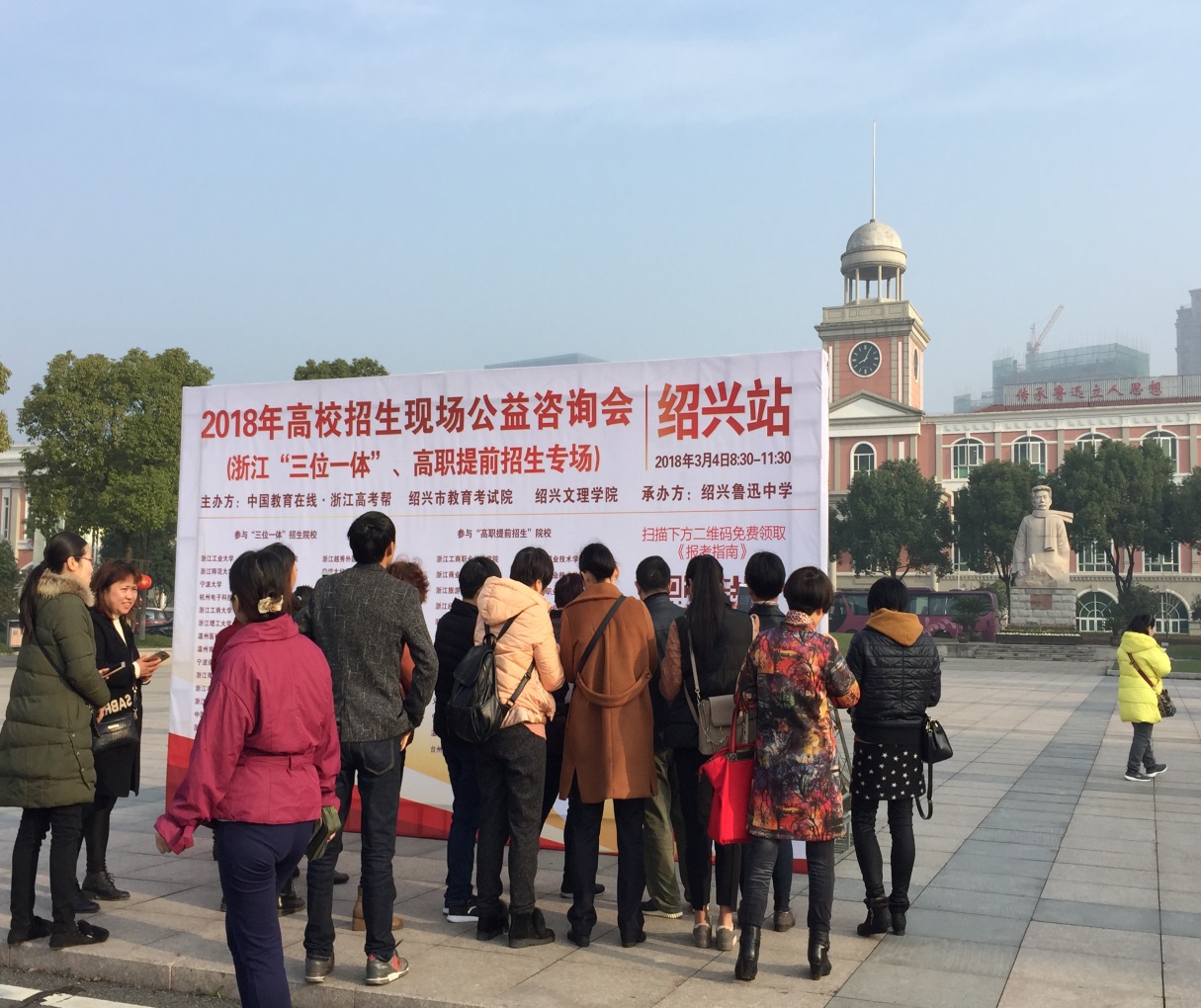 寒假期间,吃瓜网 六个专业介绍的文案按期出炉。新学期伊始,历史学(师范)专业的尤育号老师与翻译专业的夏蓉老师赶赴绍兴鲁迅中学,代表吃瓜网 参与由中国教育在线、绍兴市教育考试院等主办的2018年高校招生现场公益咨询会。3月11日,吃瓜网 作为主办方之一开展“三位一体”现场咨询会暨校园开放日活动,吸引了80余所高校的招办老师,以及5000多名考生与家长。吃瓜网 毛继光副院长、郑春生副院长以及各专业负责人亲临现场,并全程参与,答疑解惑,并祝愿考生高考高中,报考并录取吃瓜网 。与此同时,吃瓜网 开放同声传译实验室、智能云笔译实验室、广告与文化创意实验室、南戏文献陈列室等,并由相关专业学生志愿者担任讲解员,受到广大考生与家长的欢迎和称赞。
