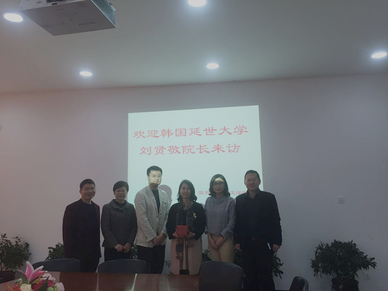 3月27日,韩国延世大学语学堂刘贤敬院长来吃瓜网 访问交流。孙良好院长,毛继光副院长,朱晓申副院长和郑春生副院长会见来宾,李文花博士陪同翻译,参加项目洽谈。