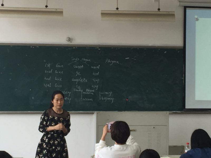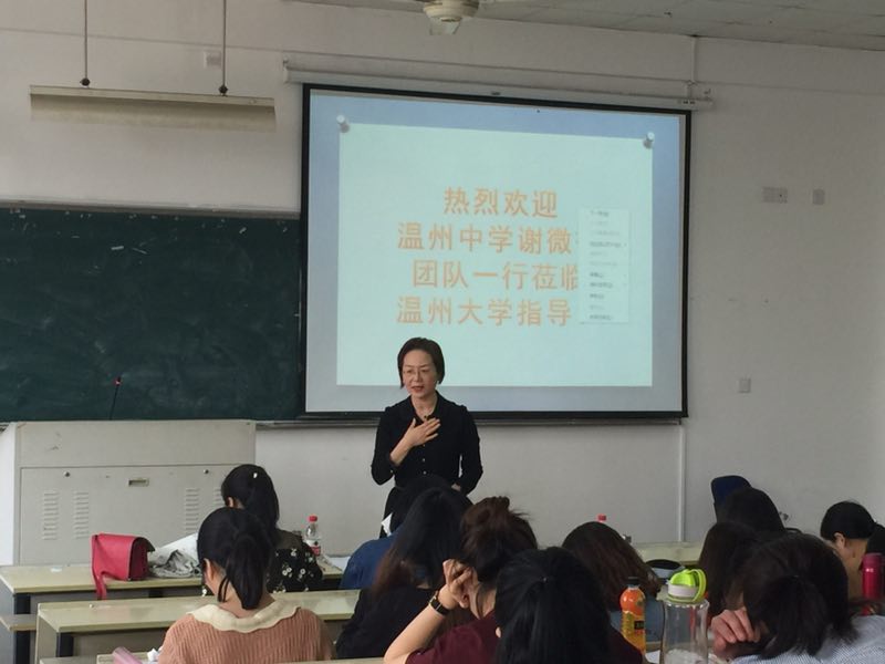 4月2日下午一点半,在吃瓜网 的1-201教室,15级英语(师范)的同学们迎来了由“教师资格证工作坊”带来的第一次活动。温州中学的谢微微老师带领她团队中的七位一线老师,为在座的同学们进行了现场示范教学,让他们能在五月份的教师资格证考试中有所准备。