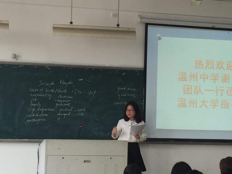 活动由英语(师范)专业系主任杨开泛老师主持。首先是学院副院长毛继光老师讲话。他代表学院对谢微微老师团队表示欢迎和感谢。同时对在座的同学们提出要求,希望大家认真听讲,做好笔记并有所感悟。然后,由刘建国副院长给现场的八位教师颁与了荣誉证书。接下来,七位来自温州中学的一线教师按顺序给在座的同学们带来了写作、词汇、语法、听力等七个不同主题的现场示范教学。老师们各个面带微笑,声音洪亮,课程设计层次清晰,板书简单明了,教态自然,大方自信,给同学们留下了深刻的印象。七位老师结束了示范教学后,谢微微老师对七位老师的示范做出总结,并告知在座的同学们在教资面试时应该注意的点,使同学们对此次示范教学有了更清晰的认识。最后,学生代表屠婧斓同学发表自己在这次活动中的感悟,并对所有的老师表示感谢。