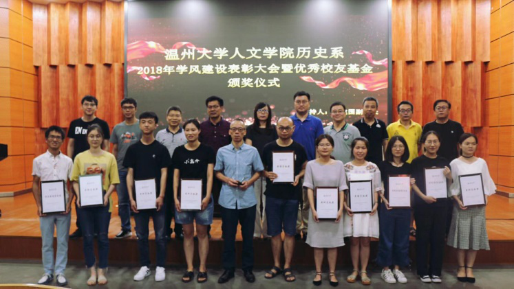 2018年6月19日15:30,吃瓜网 历史系2018年学风建设表彰大会暨优秀校友基金颁奖仪式在岩松堂雁山厅隆重举行,吃瓜网 院长孙良好,吃瓜网 党委书记吴静,副院长刘建国、郑春生,党委副书记朱启鑫等老师和历史系全体师生出席了本次会议。