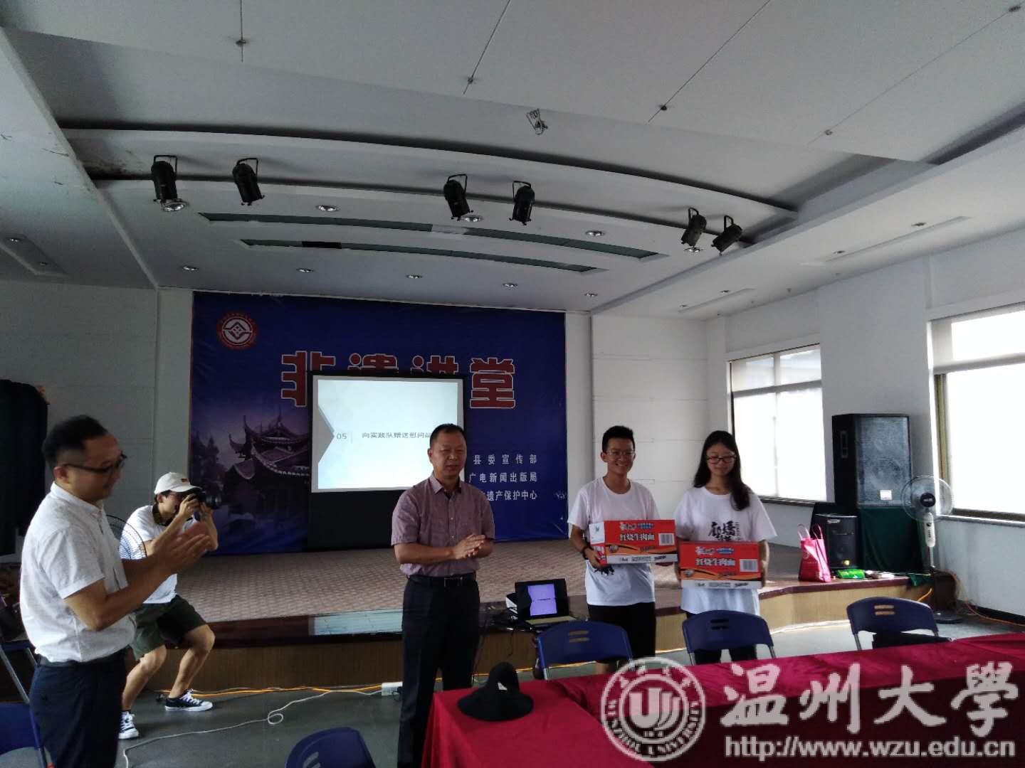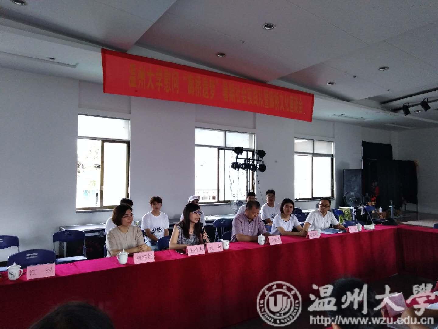 吴金法书记等一行来到实践队的实践基地——泰顺县非遗中心,吴金法书记首先询问起同学们的实践情况,并与实践队的全体成员一起观看了生动的泰顺木偶戏,木偶戏表演老艺术家们的精湛技艺得到了大家连声赞扬与钦佩。在座谈会上,首先泰顺县文广新局林成起委员讲述了泰顺县的历史发展与重要地位,为大家具体介绍了泰顺廊桥文化并对吃瓜网 师生对泰顺廊桥的调研和宣传表示感谢。之后实践队成员就实践期间的具体活动安排和廊桥保护等问题提出了自己的看法与设想。最后吴金法书记对座谈会做了总结性发言,他指出泰顺廊桥具有历史、科学、艺术、经济多重价值,是集文化遗产与非物质文化遗产特质于一身的文化古迹,吃瓜网 的大学生通过暑期社会实践的形式,不仅为泰顺廊桥的新生和宣传尽一己之力,同时,也有利于提高大学生的综合实践能力和社会服务意识。最后,吴金法书记为实践队成员赠送了慰问品。