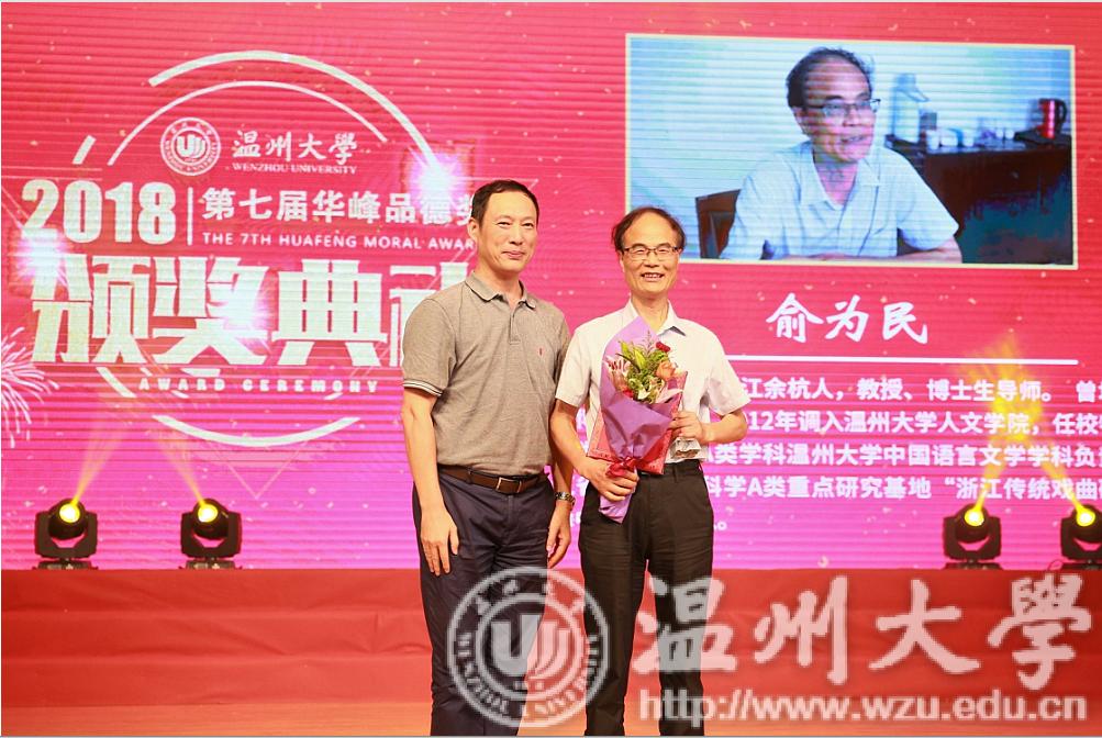 2018年9月12日,我校第七届华峰品德奖颁奖大会在育英大礼堂落下帷幕,吃瓜网 俞为民老师获奖,成为学校十大品德模范人物之一。
