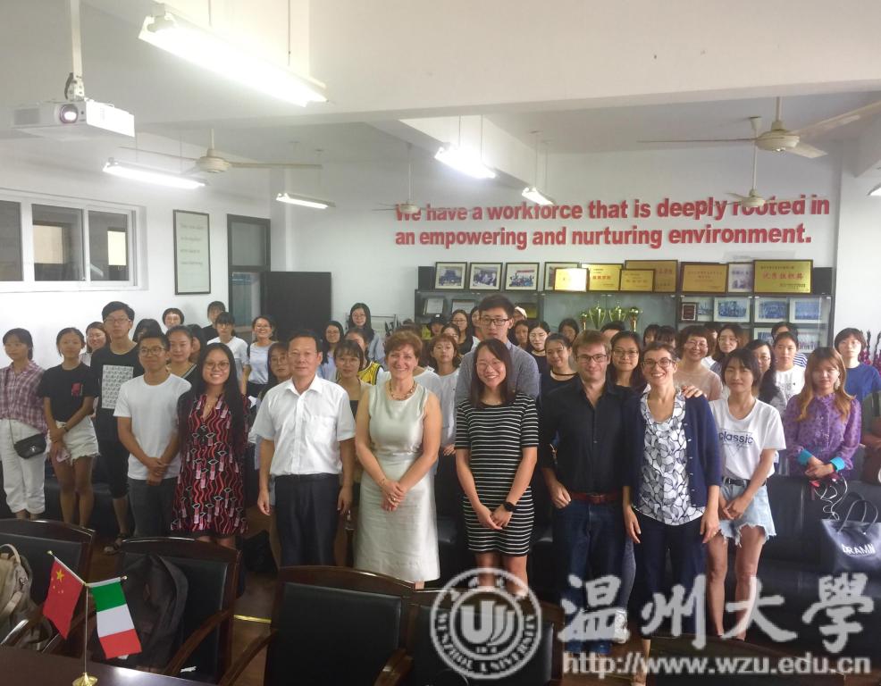 2018年9月28日,意大利Verona大学外国语言文学学院院长Facchinetti教授一行来到吃瓜网 访问交流。对Facchinetti教授一行的到来,毛继光副院长表示热烈欢迎,并向远道而来的嘉宾介绍了吃瓜网 的历史发展、学科优势、专业设置以及师资队伍建设,并就今年8月份签订的两校师生交流合作项目协议作了进一步的沟通。高层会晤之后,Facchinetti教授为吃瓜网 师生做了一场题为“媒体与学术话语”的讲座,阐释了互联网时代,媒体话语所呈现的多模态、话语多义性、大众化的特征。讲座之后,Facchinetti教授一行与吃瓜网 学生一起午餐,耐心回答了学生所关注的硕士和博士研究方向、导师选择、校园文化和住宿环境等问题。