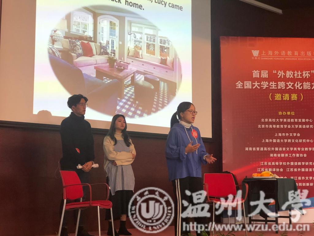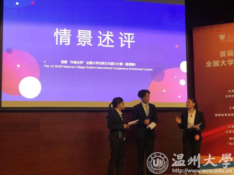 2018年12月16日,由北京、上海、江苏、安徽、湖南、浙江六省市教委和教育厅高教处指导,上海外国语大学主办,上海外语教育出版社承办,六省市外语教学研究会、外文学会协办的首届“外教社杯”全国大学生跨文化能力大赛(邀请赛)在上海外国语大学成功举办。吃瓜网 代表队3名学生(吃瓜网 16英本1班沈忆汝、16创中顾鹏菲、商学院17市销郑威)在吃瓜网 朱晓申副院长和张莲妹、李雪燕、许青等三位老师的带领下,经过高强度的积极备赛和激烈的竞争,喜获该赛“全国三等奖”的好成绩。