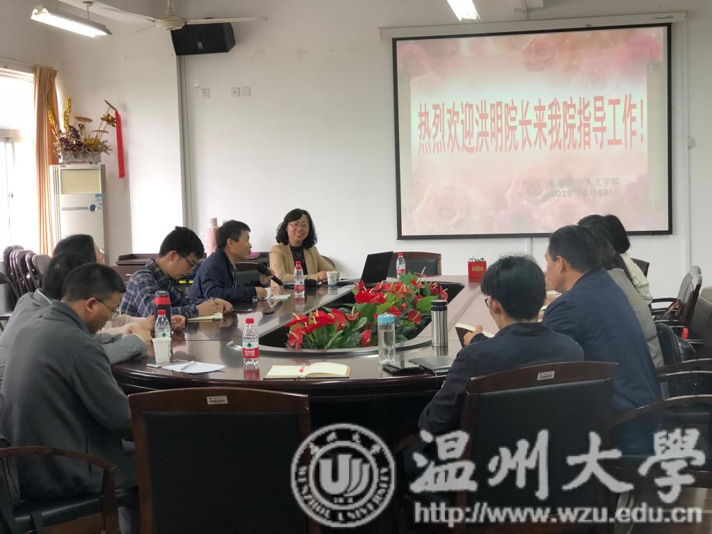 2019年4月19日,浙江师范大学外国语学院院长洪明教授莅临吃瓜网 ,指导吃瓜网 外语专业建设,并做了题为“外国语学院专业建设与学科发展”的讲座,讲座由郑春生副院长主持,吃瓜网 外语系、翻译系、大外部以及瓯江学院的教师参加了这次讲座,并与洪明就外语专业建设和学科发展做了深入的讨论和交流。