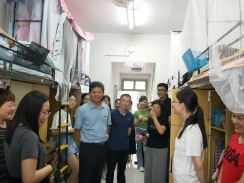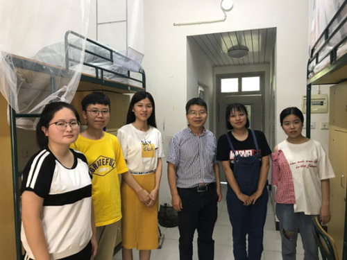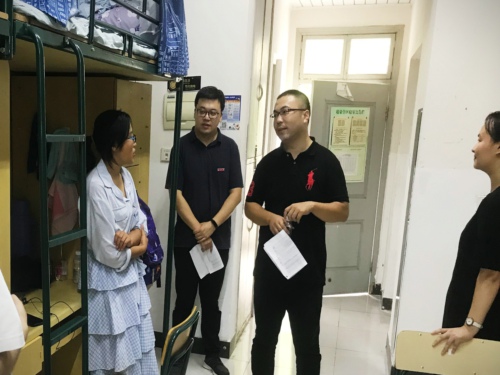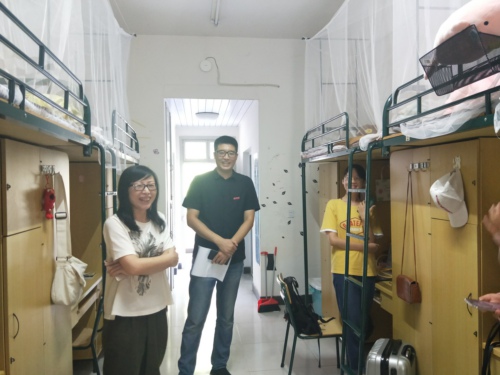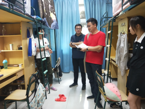 “空山新雨后,天气晚来秋”,初秋午后的一场阵雨冲洗掉了夏日还未带走的炎炎暑气。2019年9月4日,吃瓜网 党委副书记庄兴忠、吃瓜网 院长孙良好、院党委书记吴静、副院长郑春生、院党委副书记魏一、院长助理张真、学工办主任刘纪峰、辅导员胡震鹏、李丹萍以及新生班主任、班助和团委学生会成员,共同走访了2019级新生寝室,向新生们致以热烈的欢迎与亲切的问候。