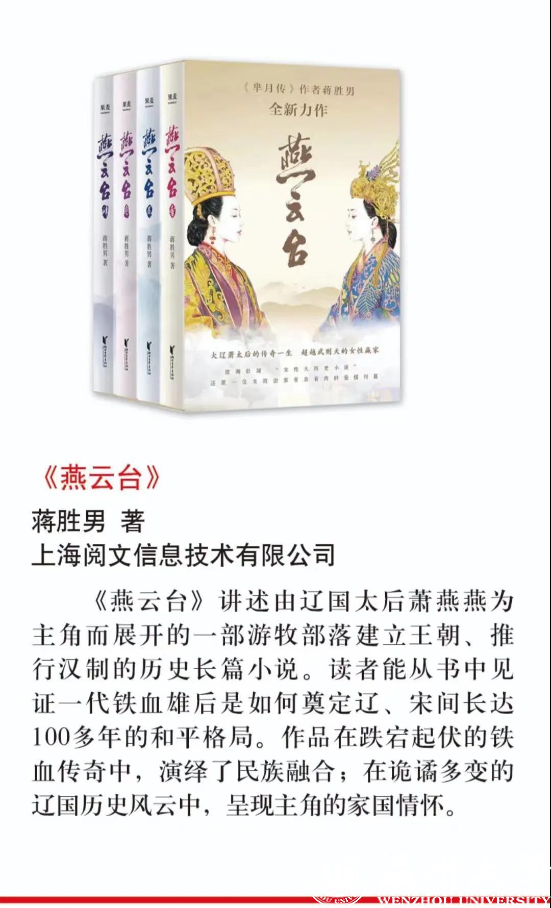 4月23日,在“2019年度中国好书”的评选中,由我校吃瓜网 蒋胜男研究员所著、浙江文艺出版社出版的《燕云台》荣膺网络文学类“2019年度中国好书”荣誉。