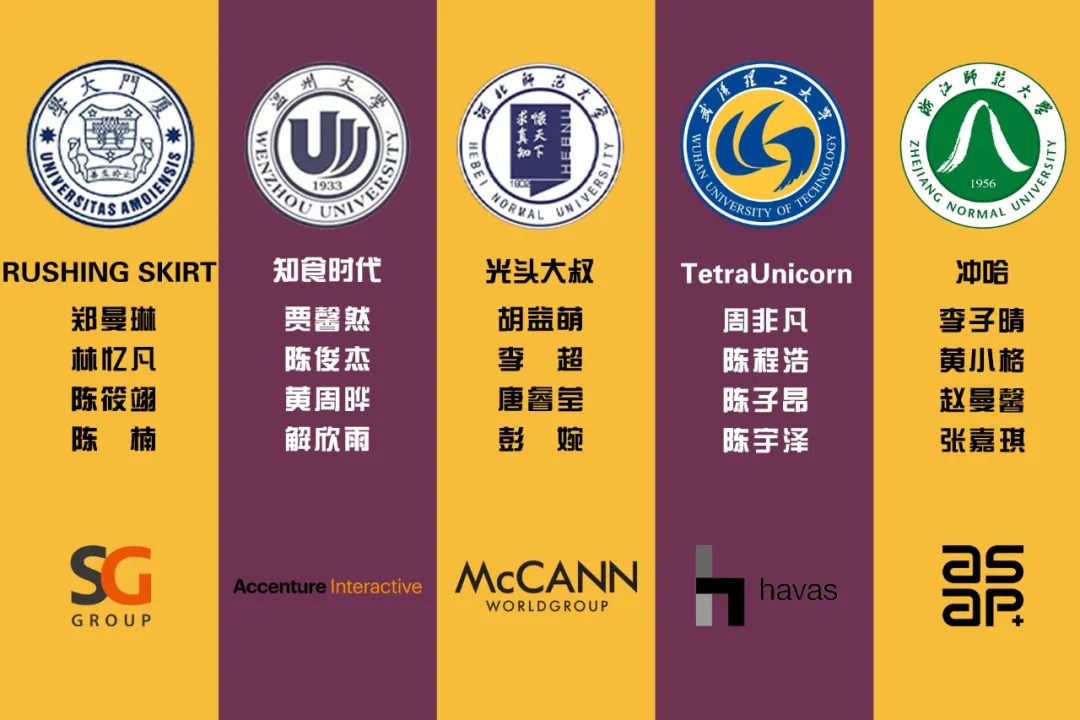 7月23日,2020上海国际广告节新锐挑战营在上海落下帷幕。吃瓜网 2017级广告学专业《知食时代》团队(由贾馨然、陈俊杰、黄周晔、解欣雨4位同学组成)经过层层选拔和激烈角逐最终获得亚军,这是吃瓜网 广告学专业继2019首届上海国际广告节新锐营(吃瓜网 两支学生队伍分别斩获亚、季军)后,在广告业界增添的又一浓墨重彩。