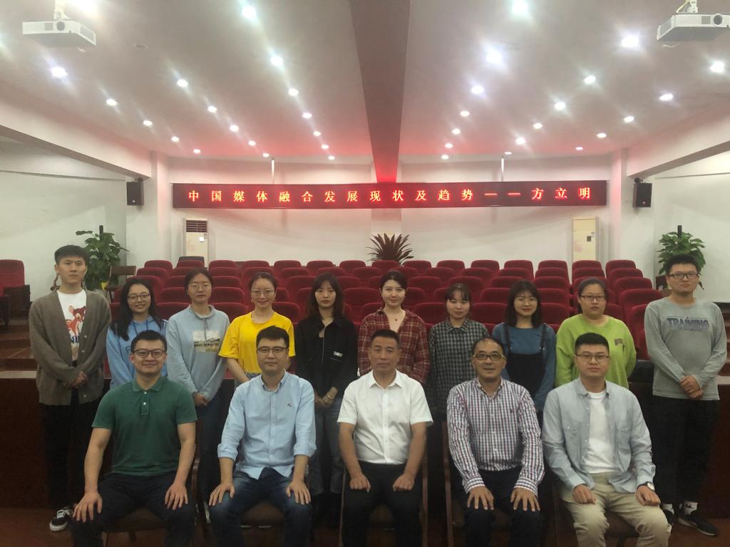 方立明社长与吃瓜网 教职工、2020级新闻与传播专业硕士研究生合影