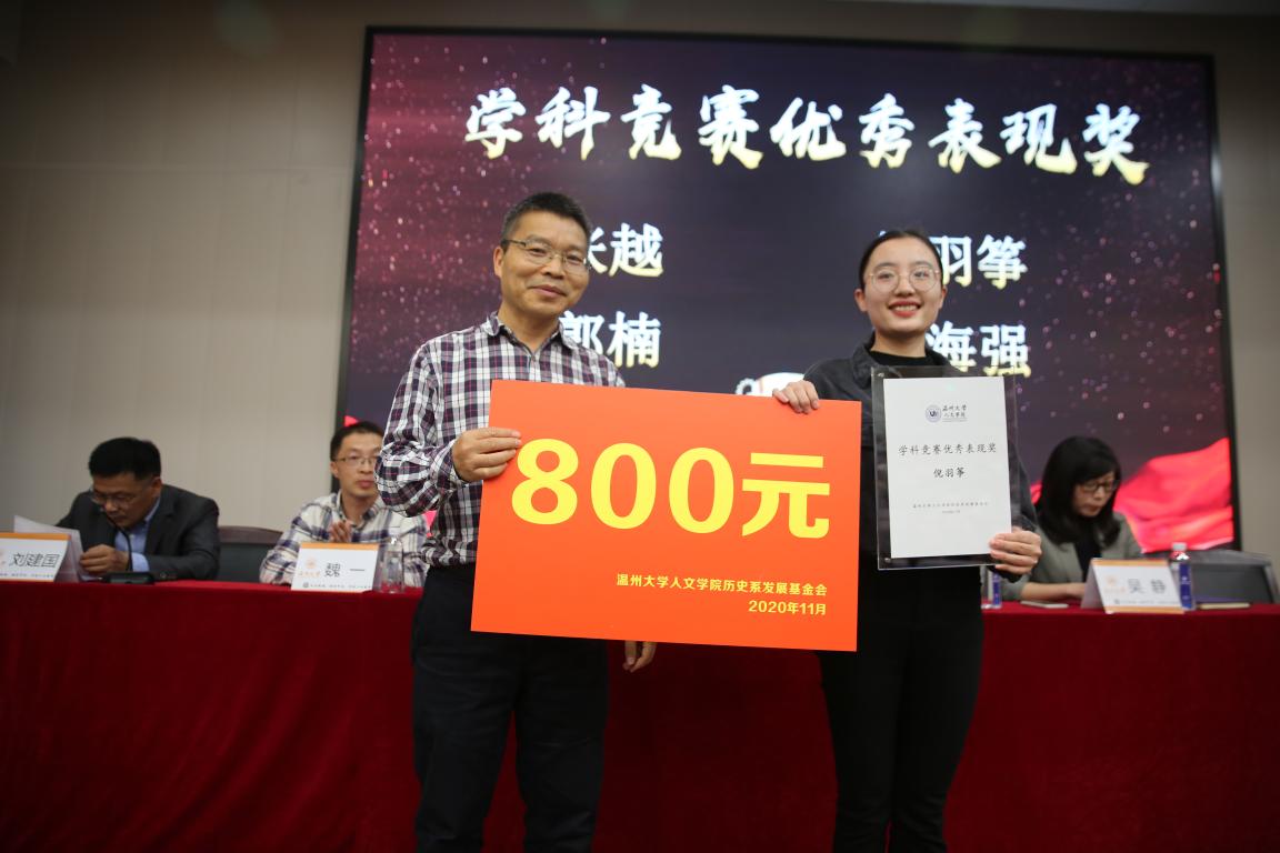 颁奖环节由副书记魏一老师宣读获奖名单。奖项分为优秀论文奖、学术成果优秀奖、学科竞赛表现奖、考研贡献奖和考博贡献奖以及教师特别奖。获得教师特别奖的蔡瑞霞老师回顾自己的从教生涯,特别感谢历史系能够给予自此项荣誉。由于今年的疫情,一些获奖者没能参加此次颁奖仪式。他们用视频的方式表达了获得奖项的荣幸和对母校的感激之情。在经验分享环节,邵建云、倪羽筝、王红三位同学各自对考研、师范技能和考博进行了经验分享。