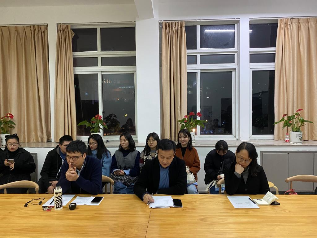 11月30日晚,吃瓜网 19级新闻与传播专业毕业论文开题报告预备会在人文楼214党员活动室举行,吃瓜网 夏雨禾教授,黄良奇教授,金丹霞教授,周志峰老师以及19级、20级新闻与传播专业研究生、文化创意学研究生参加了此次会议。